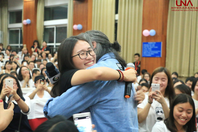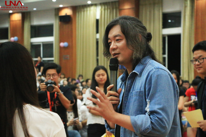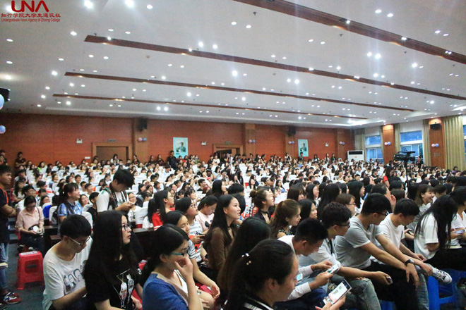 张嘉佳从自己的大学经历为切入点,与大家分享了自己在大学期间创立社团,开设酒吧等经历,一下子拉近了与同学们的距离。“大家应该在大学里接触更多东西,不要浪费时间做无意义的事,年轻就是要燃烧啊!”张嘉佳用幽默诙谐的话语,勉励大家珍惜时光,勤奋向学。