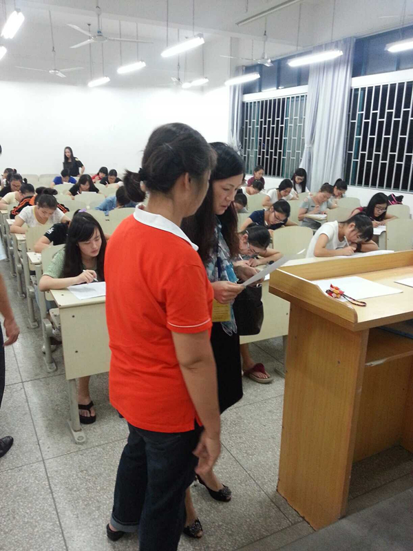 本网讯(通讯员 林名仲) 9月15日晚6点30分,为选拔优秀学生参加由外语教学与研究出版社联合教育部高等学校大学外语教学指导委员会和教育部高等学校英语专业教学指导分委员会主办的2014年“外研社杯”全国英语写作比赛,由院大学外语专业指导委员会主办,外国语系承办的2014年“外研社”杯全国英语写作大赛初赛在知新楼举行,钟春敏副院长,教务处胡楚处长、基础课部主任杨旭等领导在外国语系冯健主任陪同下对竞赛进行了巡视指导。
