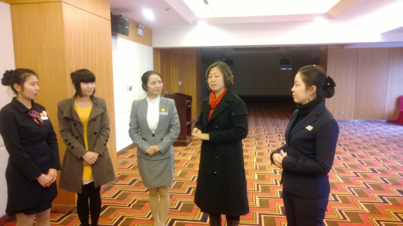 12月30日下午,钟春敏副院长在外国语系冯健主任陪同下赴武汉市五月花酒店,亲切走访和看望了外国语系2010级英语旅游方向的实习生。在新年来临之际院系领导为实习学生们送上新春祝福,勉励同学们在岗位上勤恳扎实,努力工作,为学院争光,努力锻造专业综合能力。