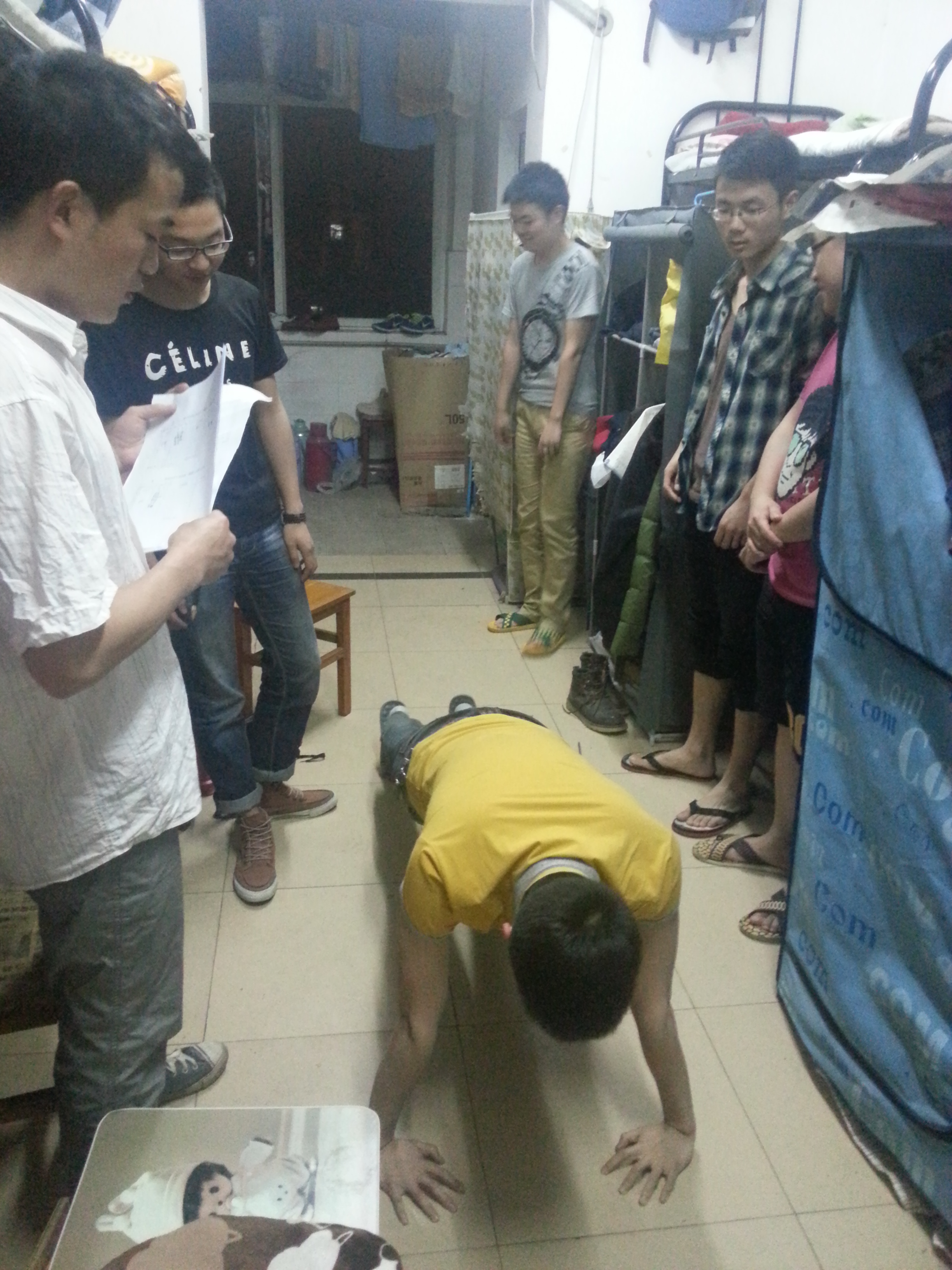 听到学院要举办俯卧撑大赛的消息后,工商管理1301本的覃院龙在班上首个报名参加。通过班级、系部的选拔,他成为进入全院决赛的人文系五名代表中的一员。“现在一分钟可以做六十多个俯卧撑。”他表示,在寝室仅进行平常的锻炼,如若突然增加运动量,会导致身体的不适应。