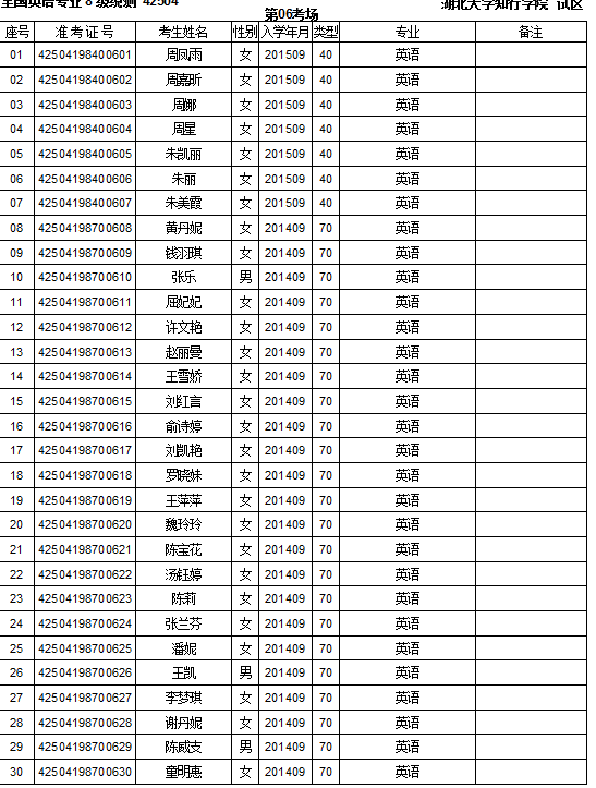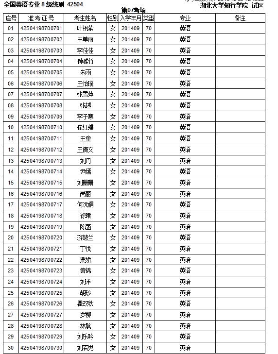 注:2014级考场分布: