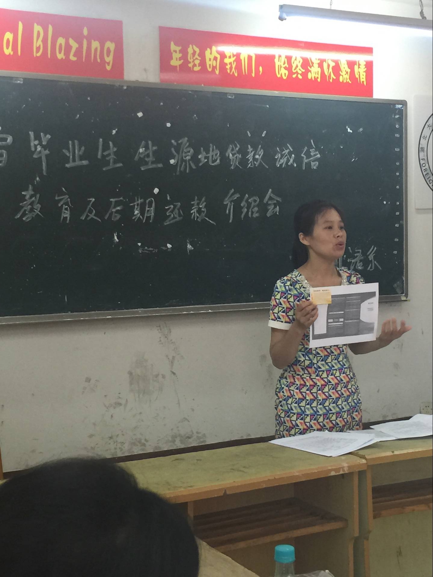 在会议上,郭凡老师先分别介绍了农村信用社生源地贷款和国家开发银行生源地贷款还款要求和流程,提醒同学们务必在离校前做好毕业前还款确认工作。随后,郭凡老师为毕业生们进行了诚信教育。其中列举了发生在身边的实例,生动地向毕业生们说明诚信还款的重要性,希望贷款毕业生们要象爱护自己的眼睛一样爱护自己的诚信记录。提出“诚实是做人之本,诚信是立事之根”,诚信守则是当代大学生必须具备的优良品质。
