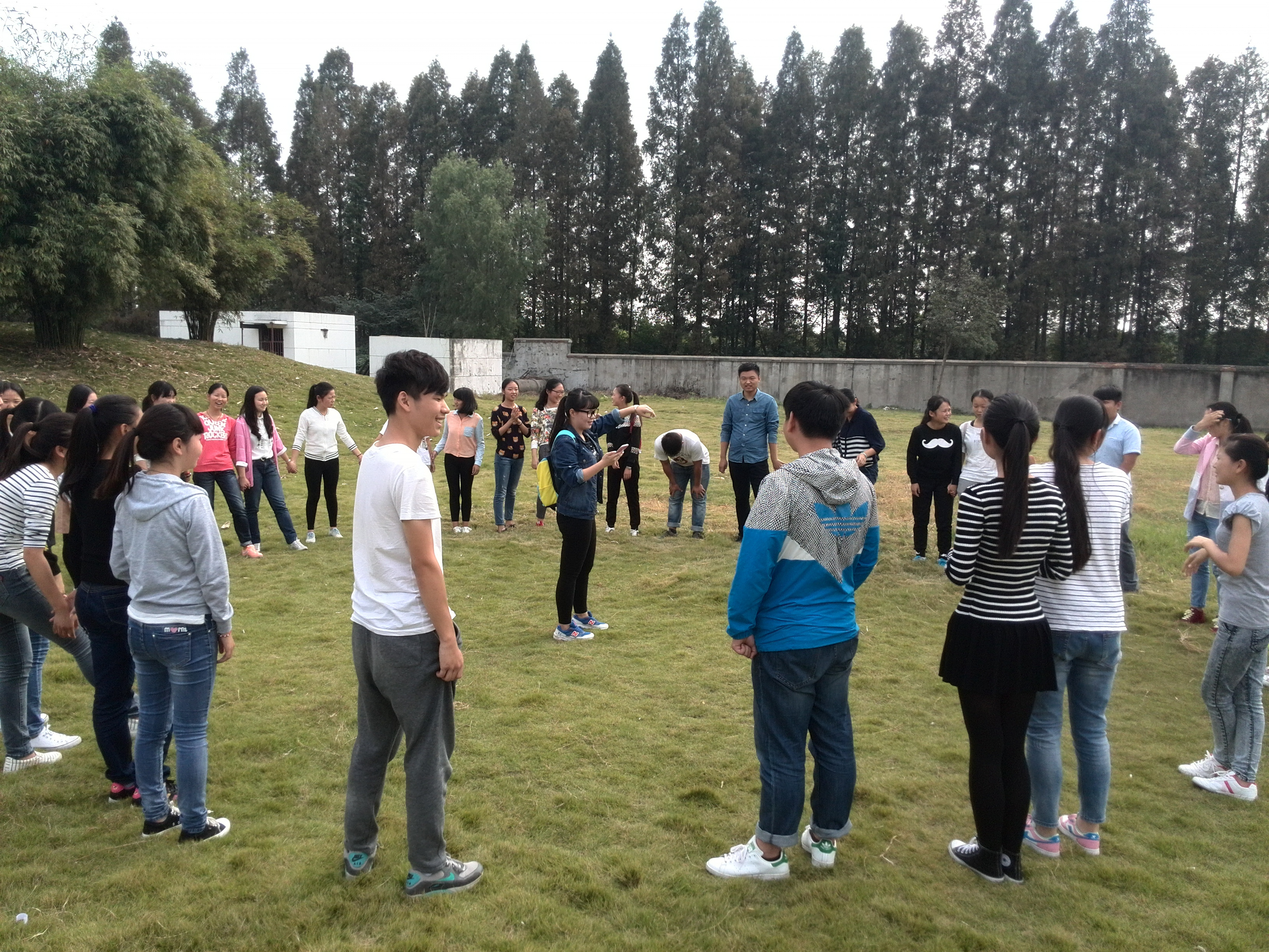 本网讯(通讯员:冯书祥)2015年10月,外国语系在2015级新生中顺利组织开展了团体辅导活动。本次团辅活动以趣味游戏为主,由各班级自主组织开展,形式生动活泼,内容丰富多彩。活动项目包括:抢数字、心有千千结、七手八脚等。