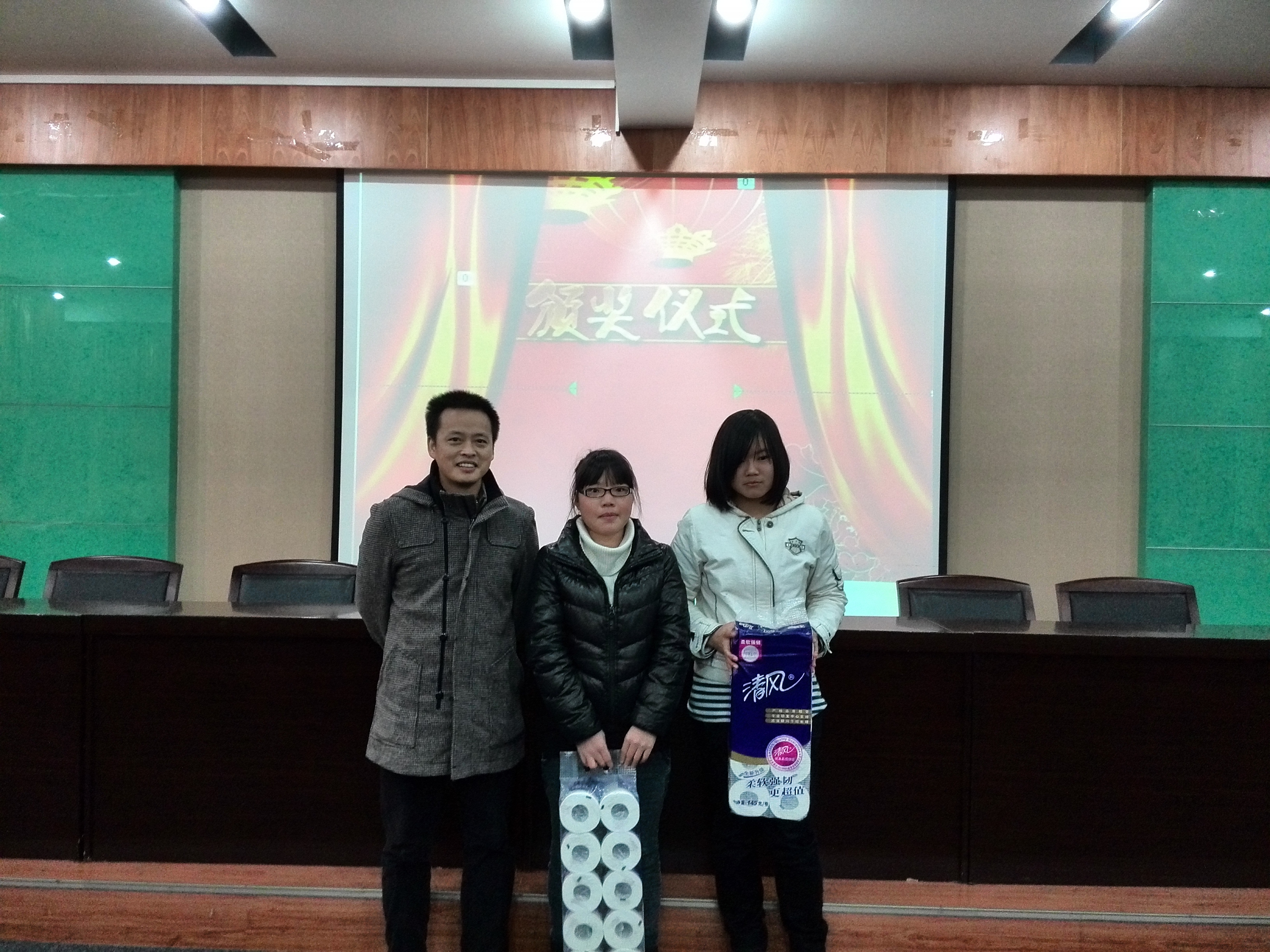 此次大会聚集了各班正副班长和寝室长们。首先,PPT为大家展示了在此次比赛中装扮得好以及不足的寝室照片,尔后又播放了院里各系寝室装扮突出的照片。当同学们看到装扮温馨,整洁的寝室时无不感到惊喜讶异,议论纷纷。接下来,由书记和辅导员为获奖寝室颁发奖品——生活用品和相应金额的电费。颁奖完毕后,刘克书记发表了讲话。他谈到,寝室是我们每位同学呆得时间最长的地方,良好的寝室环境和和谐的寝室氛围对我们大家至关重要,需要我们共同来维护。刘克书记联系自己的生活实际和一些名人事例,内容庄重又不失幽默,引得现场笑声不断。