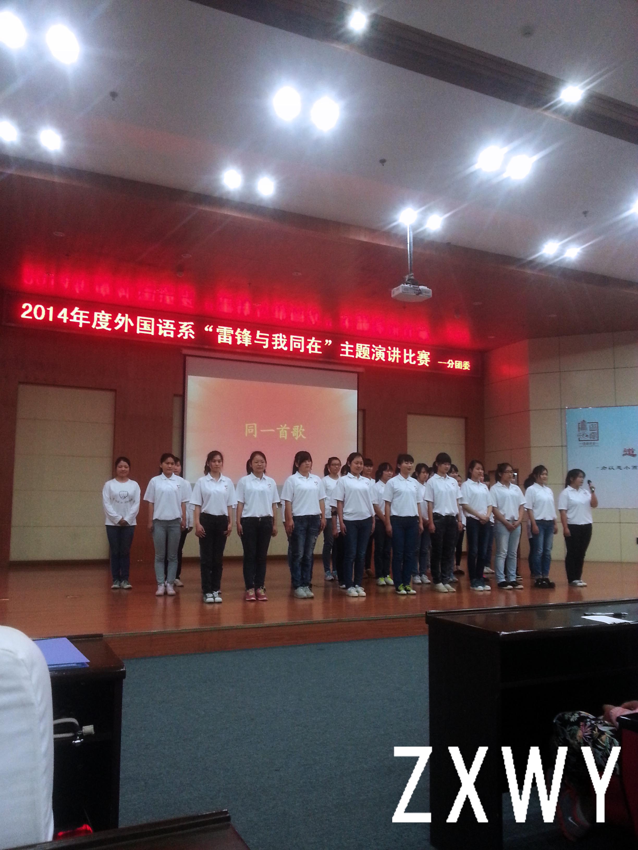 在合唱队唱完《同一首歌》后,指导老师向蕊给获奖者颁奖,最后获得一等奖的是杨梦蝶,二等奖是蔡诗雨;曾静,三等奖是李琳娜,黄延康。此次演讲比赛完美结束将意味着同学们对雷锋更加的了解。