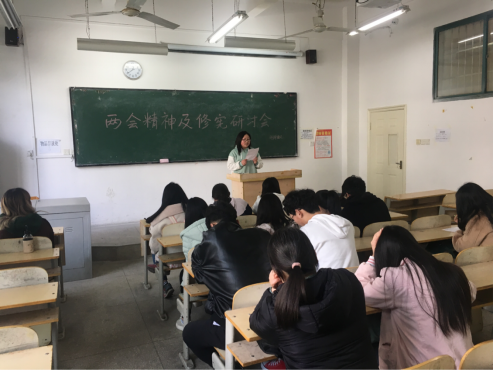 3月12日中午,我系在三教111召开关于两会精神的研讨会,本次活动以演说的形式开展,深刻学习宣传贯彻落实党的十九大及两会精神,教育和引导广大干部干事不忘初心,牢记使命,立足本岗,积极投入外国语系分团委建设中去。此次会议各部干事代表发言中都提到我们广大青年要努力学习,坚定理想信念,坚持用习近平新时代中国特色社会主义思想武装头脑,指导实践,让新思想入脑入心,真正从学习中。通过本次会议各部干事对于十九大、两会精神有了更深刻的领悟,并对相关时政热点更加关注与了解。