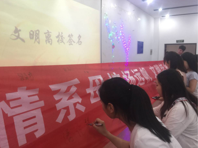 2、6月14日,2018届毕业生返校参加毕业典礼,辅导员程星老师将毕业、离校手续办理流程、离校须知、安全保障等事项做了详细的讲解,特别是对毕业生在就业协议签约、毕业派遣等相关手续的办理和转接方面进行了清晰详细的说明。此外,程老师还叮嘱毕业生应珍惜在校剩余时光,言行文明礼貌,保证身心健康和人身财产安全,并祝愿同学们前程似锦,再创辉煌。(程星)