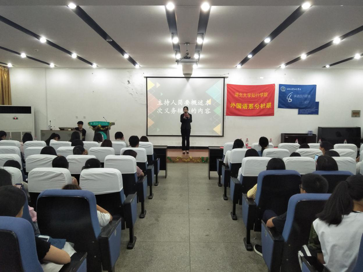 随着四六级考试的脚步越来越近,外国语系第八届四六级义务辅导系列活动即将落下帷幕,于6月13日晚上18:30在报告厅302举办了四六级义务辅导闭幕式。