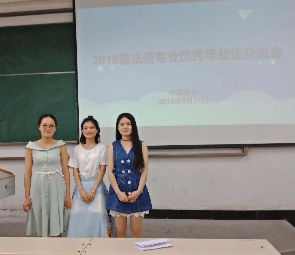 6月14日晚6点30分,我系举办了2018届优秀毕业生经验交流活动,设置了英专和法语两个会场,七位应届毕业生分享了他们的宝贵经验。本次经验交流会为高低年级同学提供了沟通平台,使低年级同学对专业学习以及就业前景有了更深入的了解和方向。