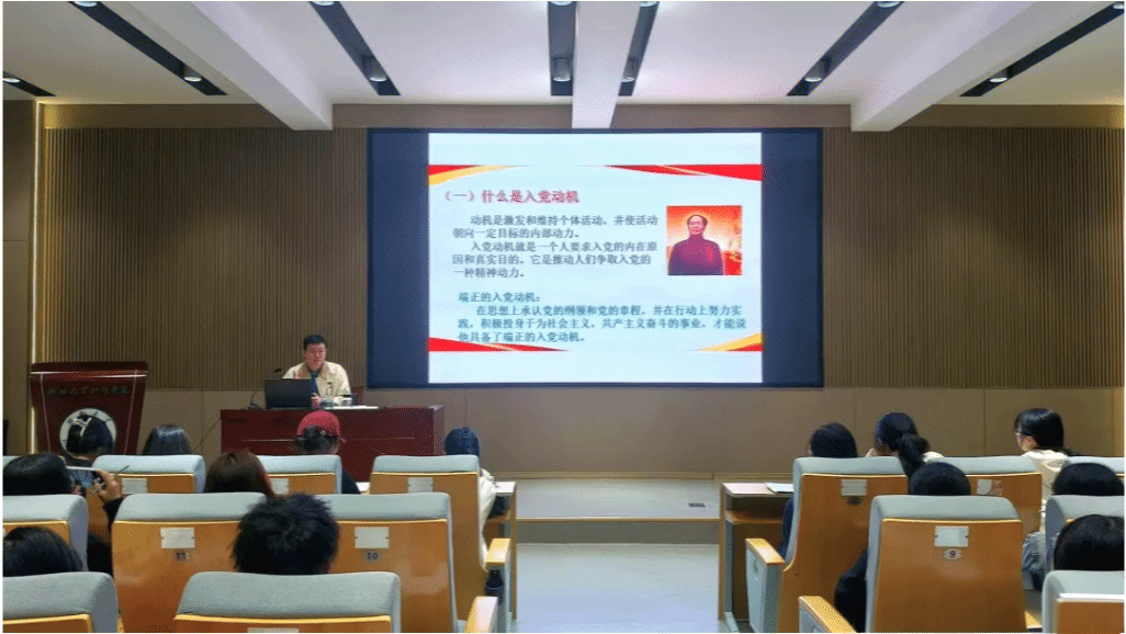 11月14日,湖北大学知行学院外国语学院第四次党课在知远楼106报告厅顺利开讲,由学院党委副书记黄智凌担任主讲人,与同学们围绕入党初心与信仰追求展开深入交流。本次党课内容充实、重点突出。第一部分明确了“什么是入党动机”以及端正入党动机的核心内涵,为同学们树立正确认知指明方向;第二部分通过具体案例,剖析了大学生群体中常见的不端正入党动机类型,倡导同学们实现“小我”与“大我”的融合,在追求个人价值的同时,兼顾国家价值与社会价值的统一;第三部分深入分析了不端正入党动机产生的根源,鼓励同学们以正确的价值观念为引领,坚守入党初心;第四部分系统介绍了端正入党动机的方法路径,提醒同学们选择共产主义道路就要做好吃苦奉献的准备,深刻阐明高校培养“又红又专、全面发展”人才的重要使命。党课最后,黄智凌副书记为同学们推荐了共产主义理论学习经典书目,鼓励大家通过持续阅读与深入学习,不断提升理论素养,夯实共产主义信仰根基,以实际行动向党组织靠拢,努力成长为符合时代要求的优秀青年人才。(供稿人:程星)
