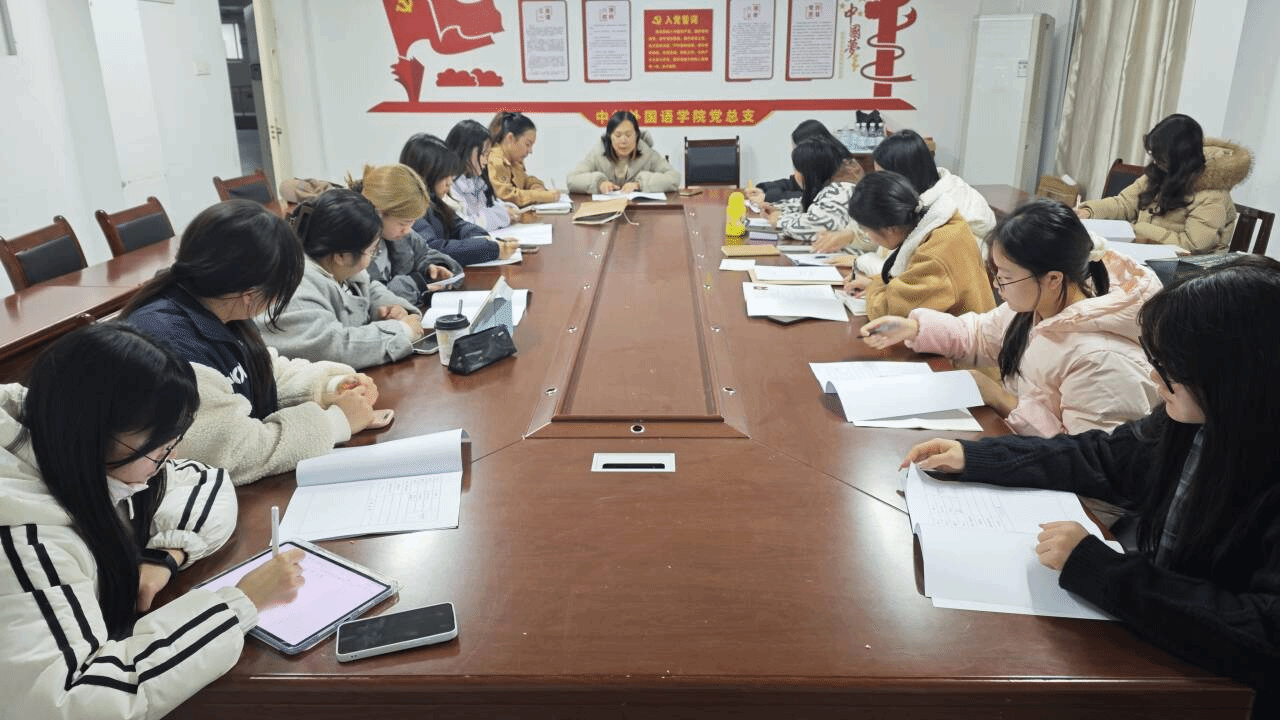 为规范入党志愿书填写工作,夯实党员发展基础,2025 年 12 月 11 日,外语学院党建工作室于知音楼 106 召开 “入党志愿书填写格式学习” 专题会议。会议由外语学院沈思老师与计算信息工程学院李琨老师联合主持,党建工作室全体学生参会。